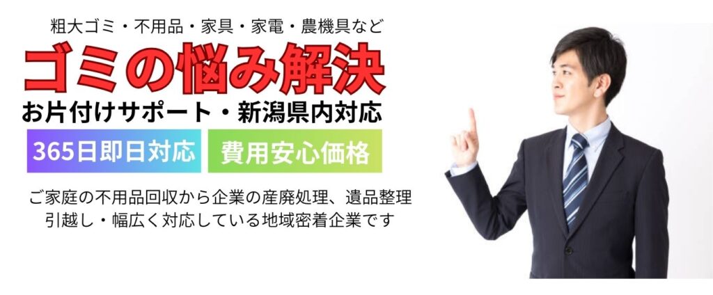 弊社では、不用品の量や種類、回収の緊急度に応じて柔軟に対応し、新潟県内での不用品回収・買取・粗大ゴミ回収のお悩みを解決いたします。